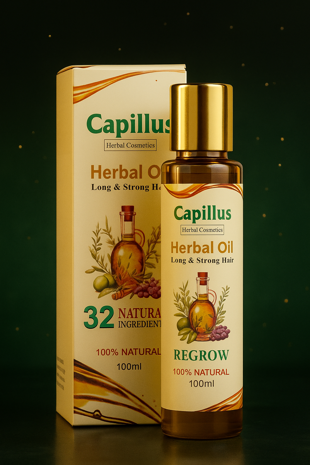 Capillus Herbal Oil is a powerful blend of 32 natural ingredients specially formulated to fight hair fall, strengthen roots, and promote faster hair growth. Enriched with Amla, Bhringraj, Neem, Castor Oil, Coconut Oil and other traditional herbs, this oil deeply nourishes your scalp while restoring natural shine and smoothness.